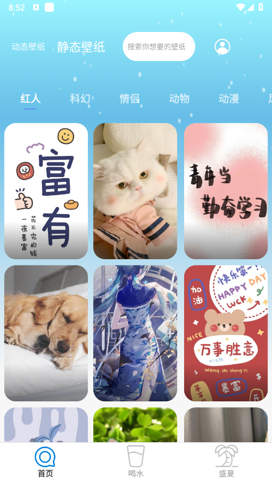 进入软件后,首页就汇集了大量的动态壁纸和静态壁纸资源。