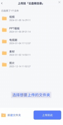 5.选择文件夹:选择您想要上传的文件夹,最后点击“上传”即可完成上传操作。