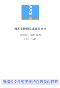 目前,压缩包文件不支持在云盘内直接打开,需要后使用第三方软件进行解压。