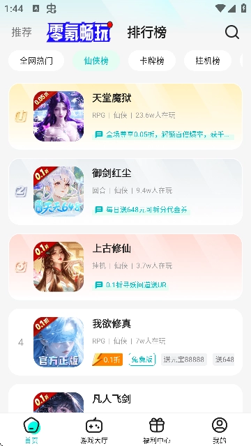 零玩游戏盒手机版准备了648元代金券、礼包码、0.1折充值折扣、免费福利号等丰富游戏福利,并且每日都会更新可领取的福利资讯。零玩游戏盒安卓版配备游戏社区板块,你能够在此分享攻略、探讨玩法、交流心得、增强自身的游戏技能,还能认识同好一同组队上分。