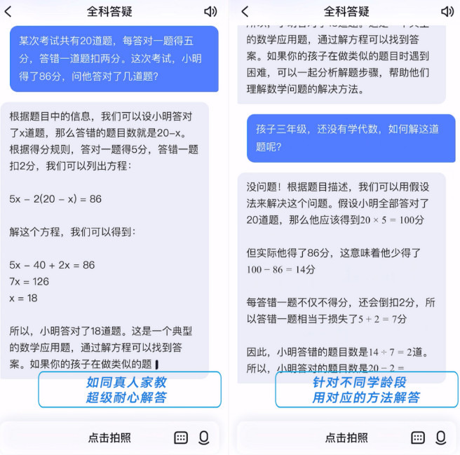 有道小P便会结合具体学段的知识水平,更换答题思路并分步讲解,引导孩子主动探索,真正理解试题内容。