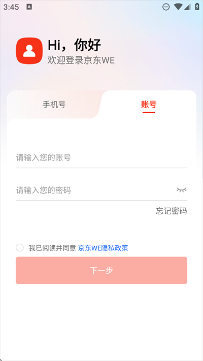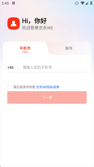 1、打开进入京东WE软件,点击同意隐私协议
