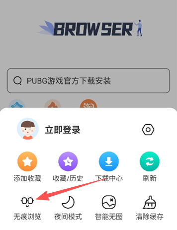3、点击菜单栏切换至无痕浏览模式,该模式下不会留下任何浏览痕迹