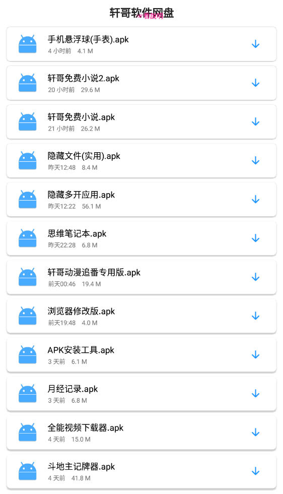 轩哥软件网盘,这款应用汇聚了海量软件资源,涵盖影视、漫画、小说等类别,同时还包含工具箱、学习类工具等实用内容。所有资源均可免费安装,且持续更新,提供正版资源,无需任何费用,能让你快速找到心仪的内容。