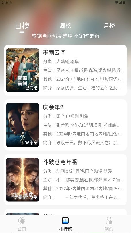 2、这里汇集了当下网络上热度最高的电影、电视剧、综艺、动画、纪录片等各类内容,涵盖的种类十分丰富,几乎能满足你所有的需求。