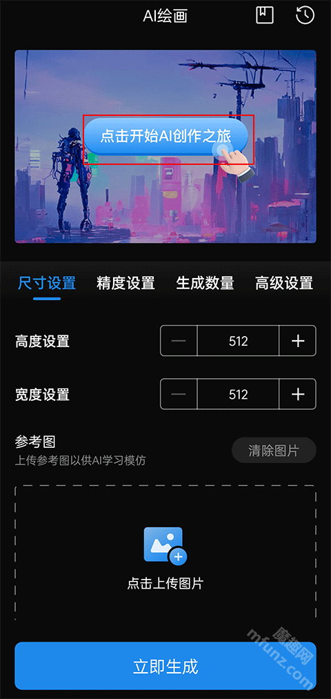 - AI绘画:根据关键词和样本照片,智能生成专属图片。