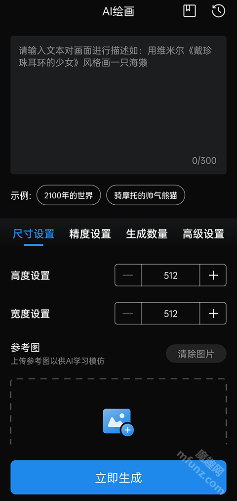 - AI绘画:用户可通过关键词和样本照片利用AI绘制专属图片。