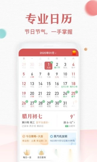 公历农历双结合,热门节气节日尽在掌握;界面清爽简洁,各类信息清晰明了,助你轻松快速规划生活。
