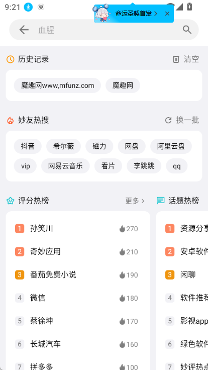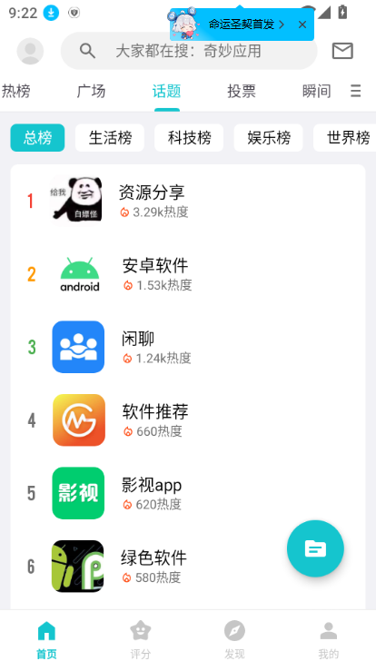 妙评是一款手机兴趣社区应用,类似于小红书和知乎,在妙评里你可以发表你的新奇见解,还有很多兴趣圈子等你加入,和趣同道合的妙友们一起深入讨论,并且妙评也支持实时热榜,安装包小巧,界面清爽。很适合平时不知道干嘛的朋友使用。