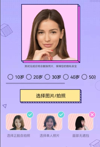 年龄时光机,可以便捷回到各个不同的年代,让自己看看变老后的样子;