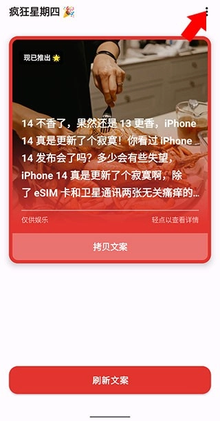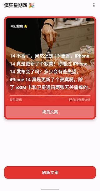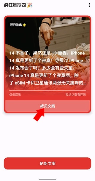回到软件主页后,用户就能刷新文案,只需一键拷贝自己想要的文案内容就行。