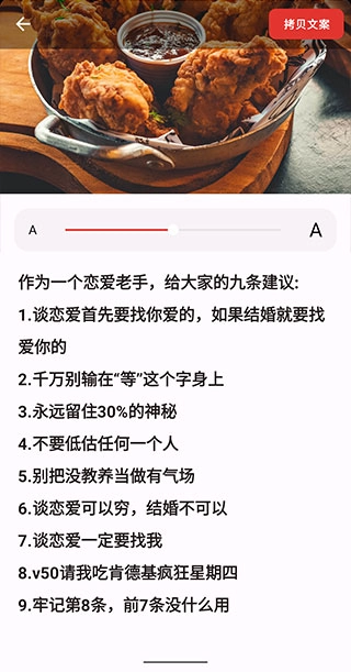 支持一键复制功能,用户能够随时把文案内容分享到各个平台。
