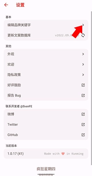 打开已安装完成的疯狂星期四应用,进入软件的主界面,然后点击右上角的设置按钮。
