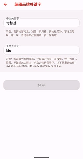 用户可以在品牌关键字编辑页面里,对需要的品牌关键字进行编辑和修改。