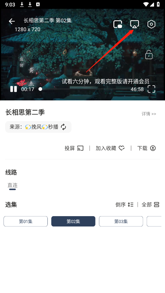 3、支持投屏播放,搜索到视频之后直接投屏即可观看,在大屏幕上享受追剧乐趣。