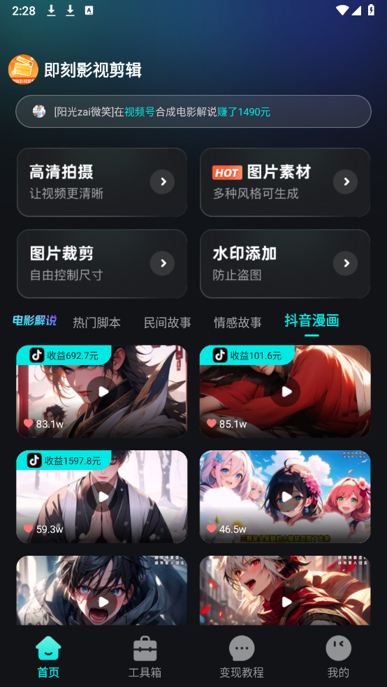 即刻影视剪辑软件是一款免费的手机视频剪辑工具,丰富的剪辑模板、素材、背景音乐与配音资源,能充分满足各类视频制作需求。其中包含大量搞笑配音和多样化字幕样式,无论是用于记录日常生活,还是视频博主创作内容,都十分适用。
