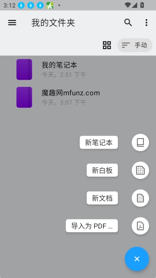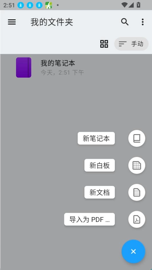 2. 支持创建新的笔记本、白板、文档,也可以将内容导入为PDF格式。