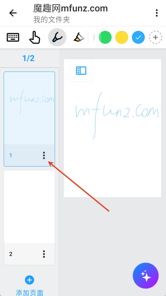 1. 启动nebo应用,进入笔记编辑界面后,点击当前笔记页面上的【...】按钮