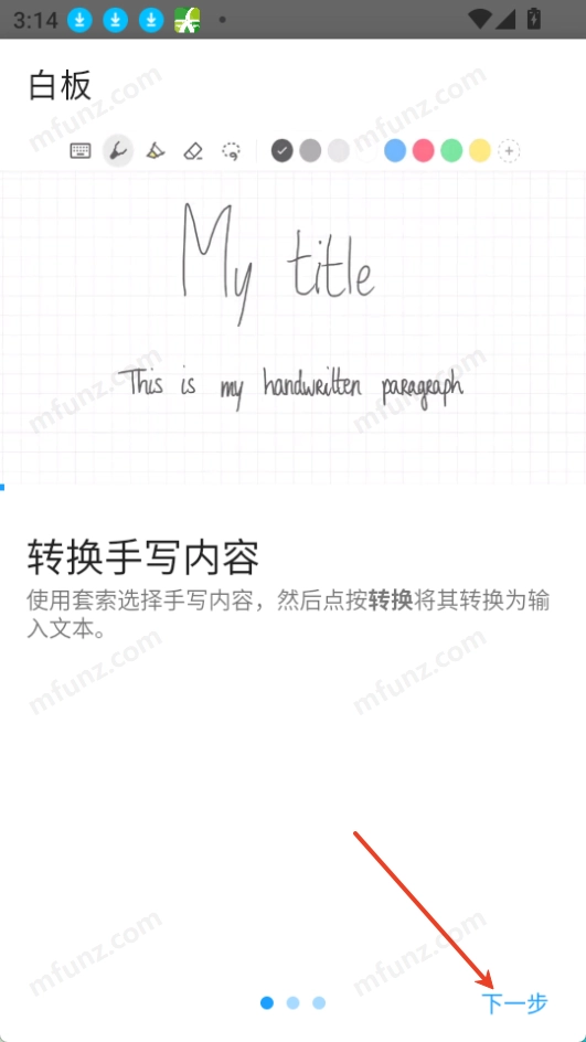 支持将手写内容转换为输入文本。