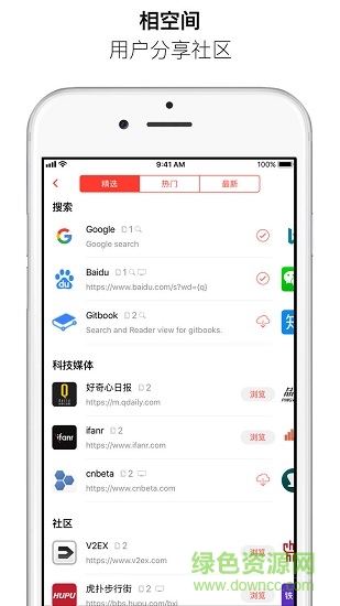 “相”是一个大小约1KB的文本文件,里面保存着目标网站的结构信息。它的功能是让“无相”知晓如何识别网站内容以及重新渲染的方式。“无相”设有一个“相空间”,这里展示着用户社区贡献的各类“相”,你只需点击相应按钮,该“相”就会出现在你的App首页,轻点即可借助它浏览网站。