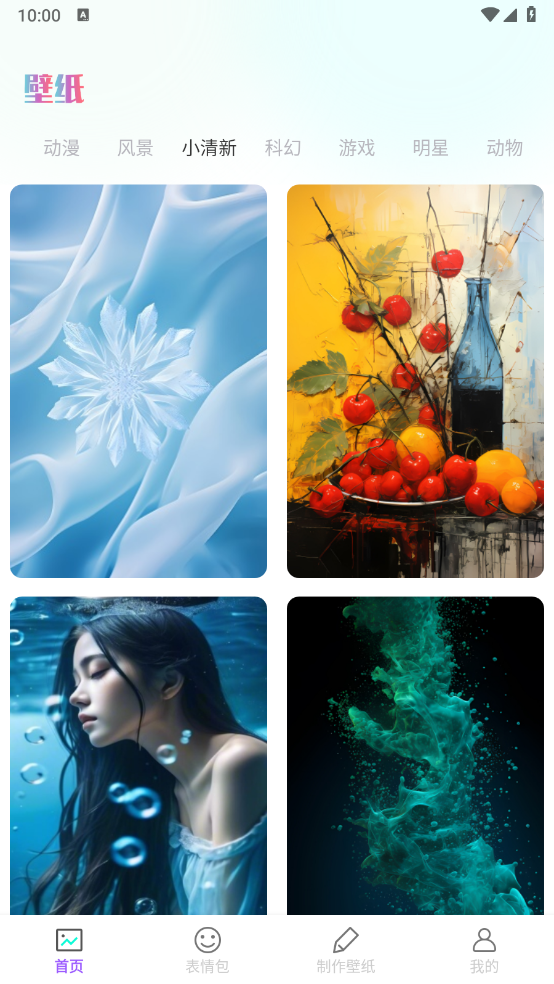 2、进入软件,有详细的壁纸资源分类,包含了动漫、风景以及小清新等类型。