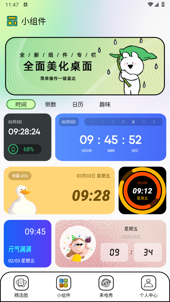 2、各种小组件能让手机桌面更具特色,打破原本图标单一的格局。