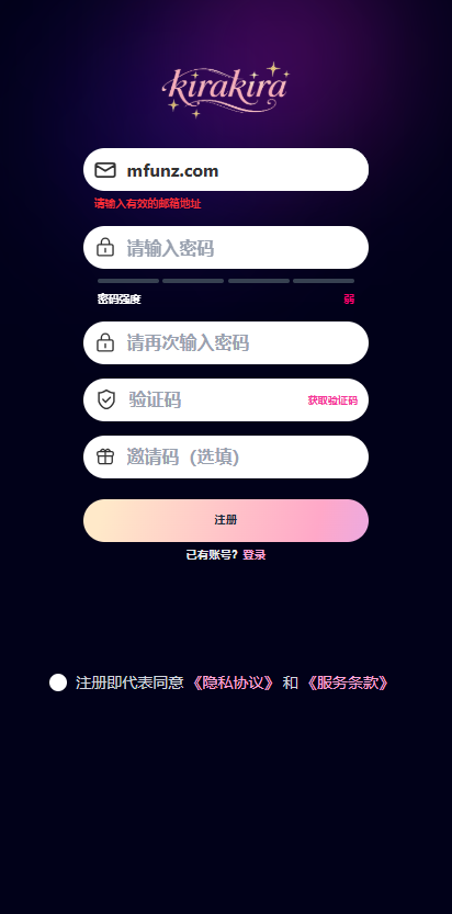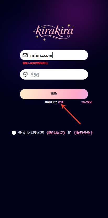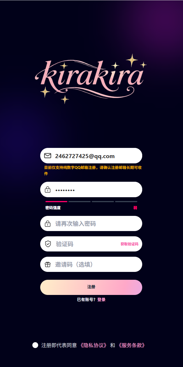 1、启动kirakiraai聊天软件后,点击立即注册按钮进行注册操作。