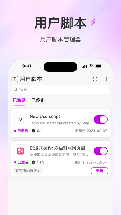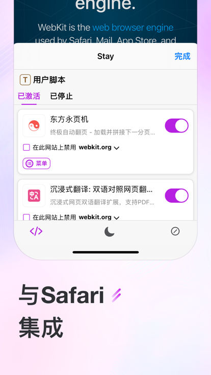 1、【用户脚本】安装或者编写用户脚本,让你的Safari支持自动翻页、沉浸式翻译、防止跳转、聚合搜索等等功能。