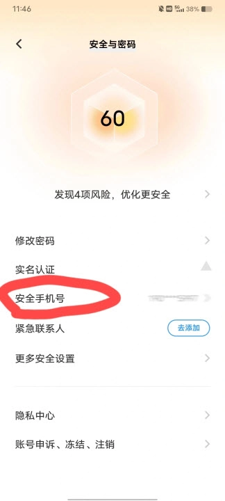 3、点击安全手机号