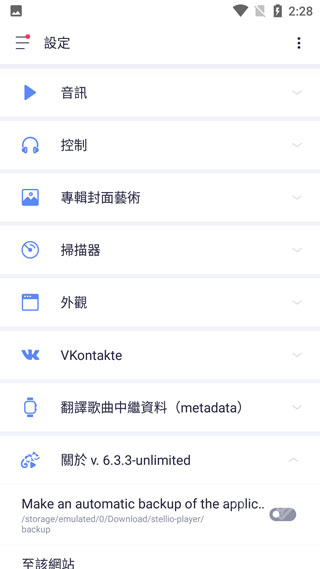4、在“设定”中可以对:音讯、控制、专辑封面艺术、扫描器、外观等进行设置;
