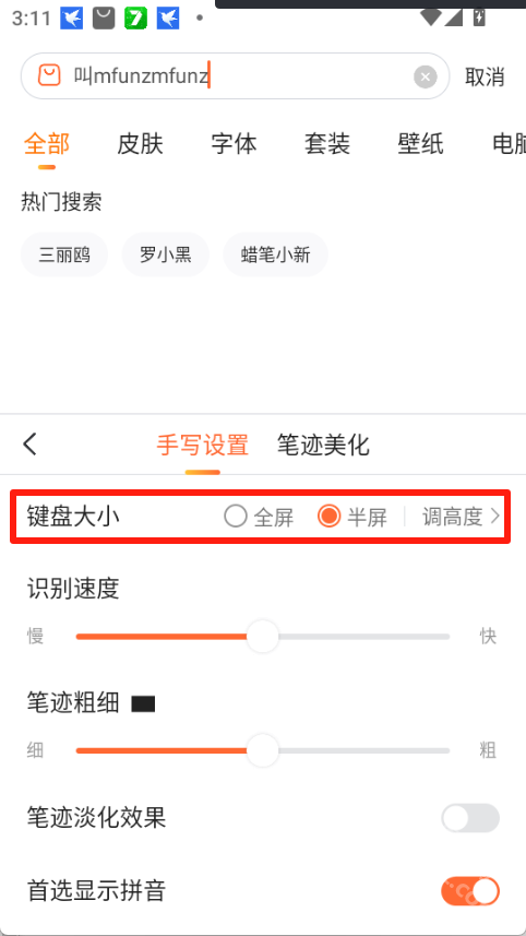 3.点击掉高度可以根据自己的需求拖动滑块,调整键盘的大小