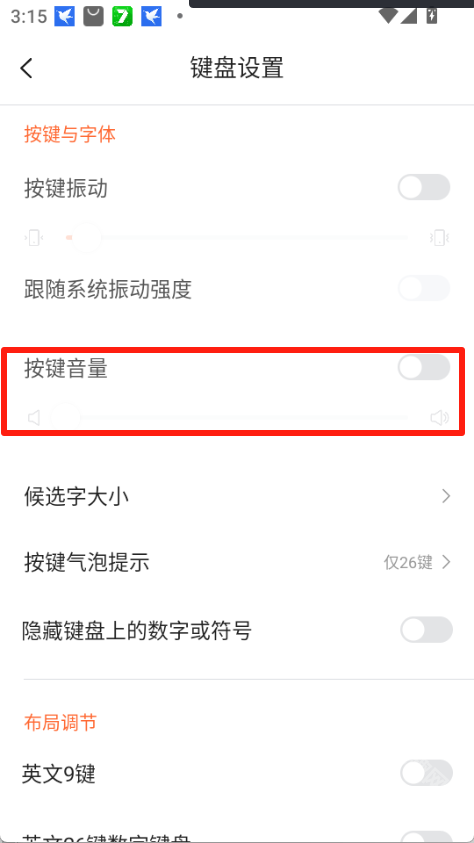 4.在键盘设置中将按键音量关闭或将声音拉到最左边即可。