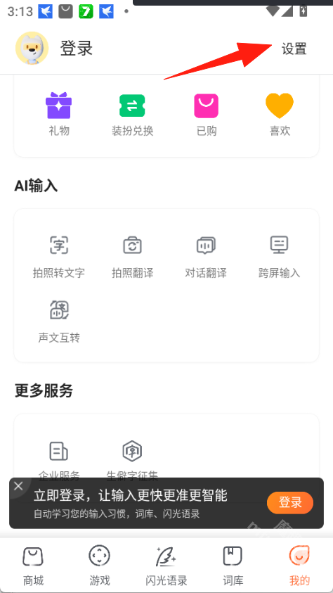 -词库和设置的云同步,可以在不同设备间同步自己的个性化设置