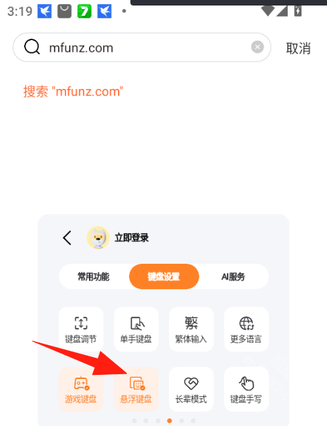 2.点击键盘设置-点击悬浮键盘,关闭悬浮键盘即可。