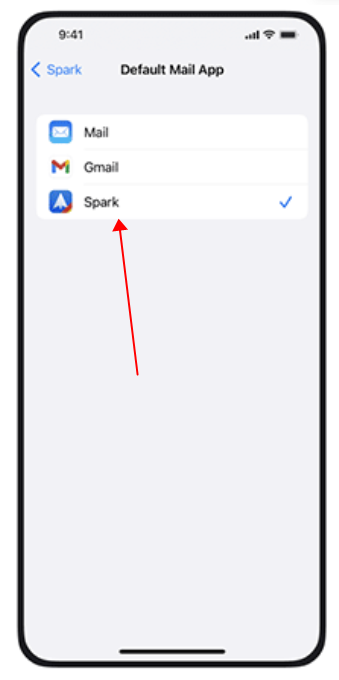 2.点击默认邮箱应用点击Spark将其设置为手机设备的默认邮箱应用。