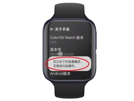 在“关于手表”页面,连续点击版本号,激活开发者模式。