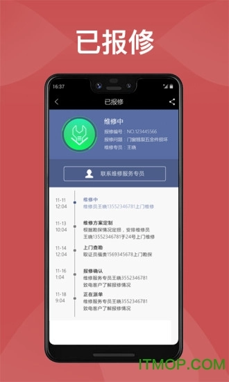 三步完成报修服务,实时查看报修进度。