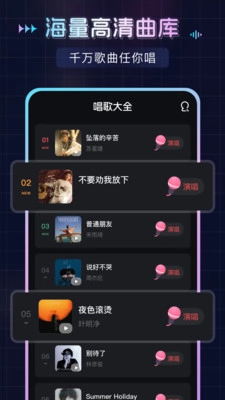 1、拥有数千万首高清歌曲,涵盖热门新歌和经典老歌,满足你的演唱需求。