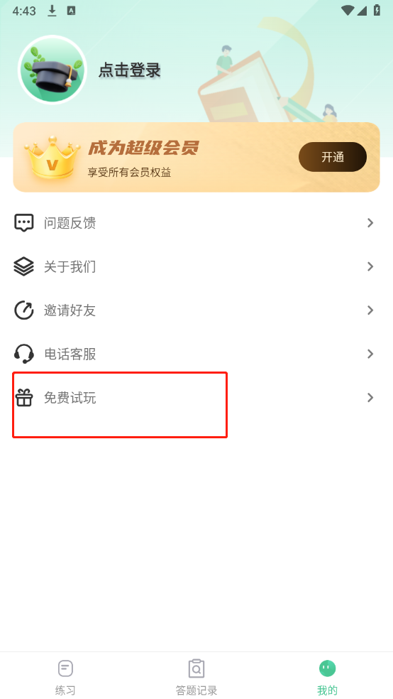 3、点击“我的”,点击“免费试玩”可以领取免费次数。