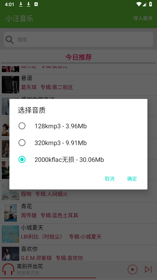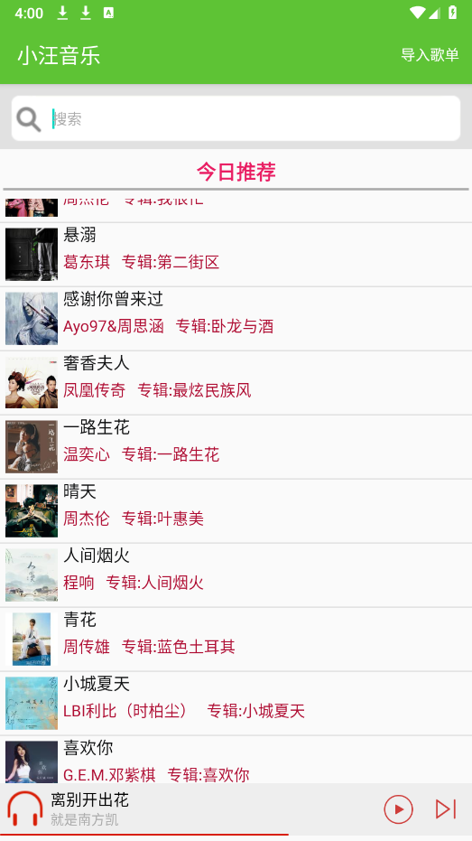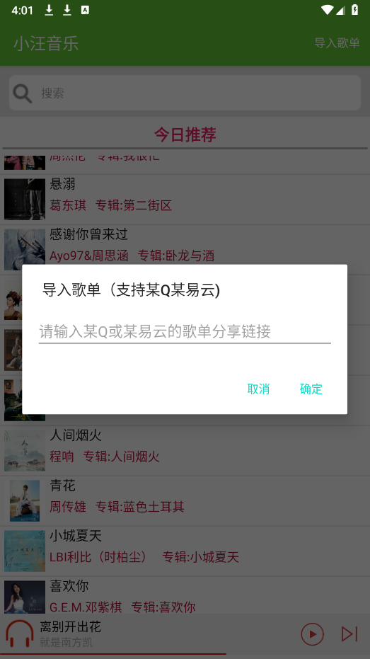 5、歌单导入:借助导入功能,可把其他音乐平台的歌单导入至小汪音乐中,便于用户进行整理与播放。
