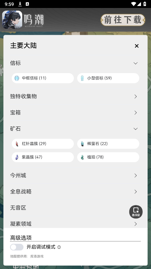鸣潮地图工具专门为鸣潮游戏玩家打造的游戏辅助工具,可以预览地图全局,用户可以通过该查看游戏地图上的资源、任务、怪物等信息,可以在玩游戏时更加顺畅,帮助玩家更好地规划游戏路线和策略。快来体验吧。