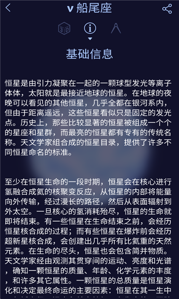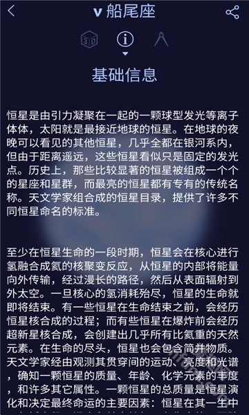 4、详细天文信息:提供详细的天文检索和学习功能,包括星座、星云等,并配有3D模型。