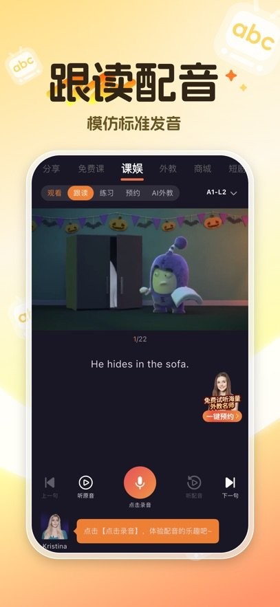 -多元化AI英语情景学习与口语练习,拥有丰富外教资源,支持1对1线上与英语外教畅快交流