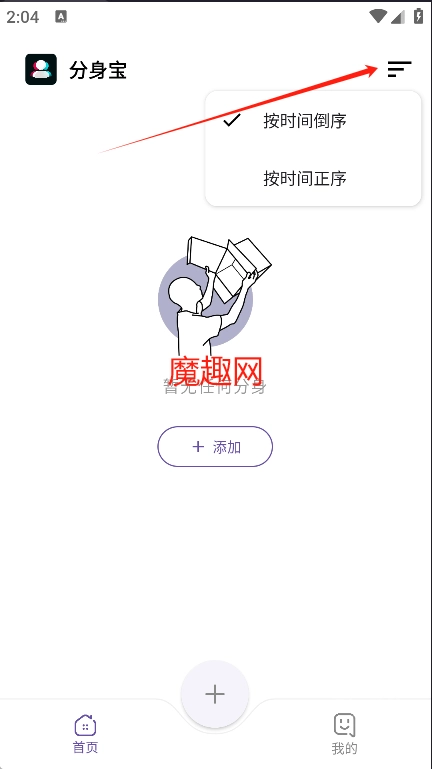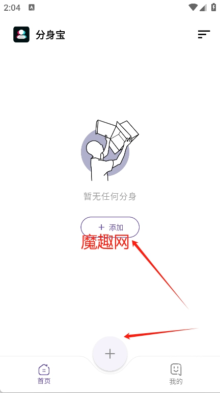 2、进入首页点击最下方的加号或者屏幕中间的加号即可选择应用进行多开