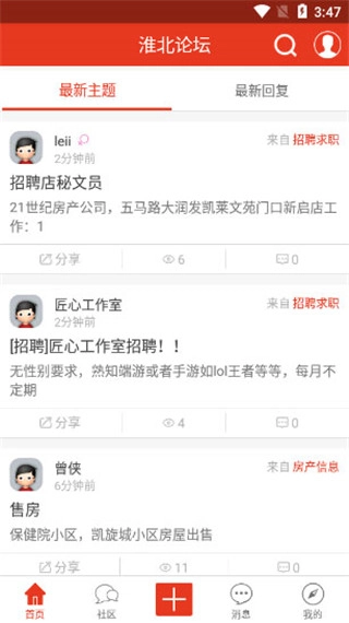 3、【招聘招工】用户可在此发布求职或招聘信息,找工作就来淮北论坛。