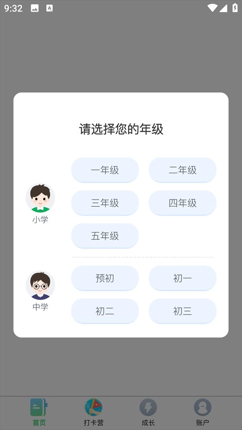 1、接着安装正版的沪学习应用,待安装完毕后将其打开,然后选择与自己对应的年级。