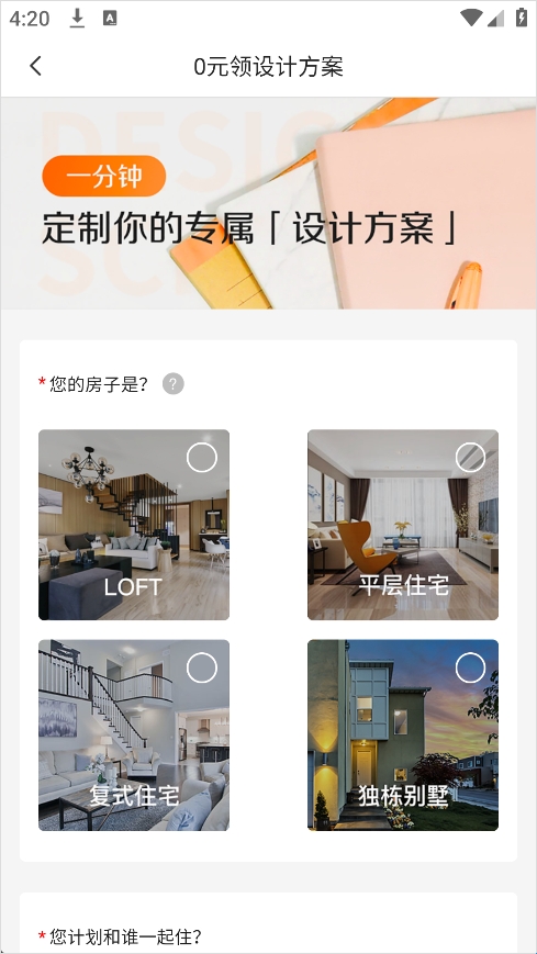 2、按照提示填写房屋的基础信息,比如户型、面积以及风格偏好之类的内容;