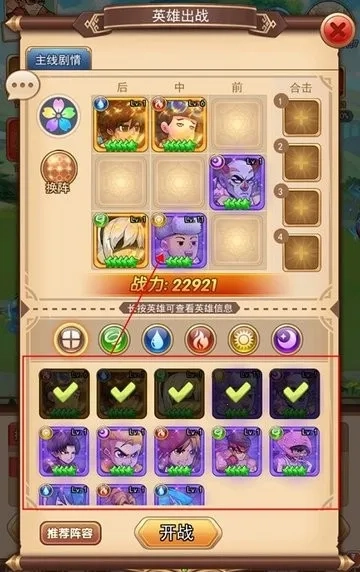 升级好英雄后就能开启主线闯关了,搭配好上阵阵容,点击出战就行。