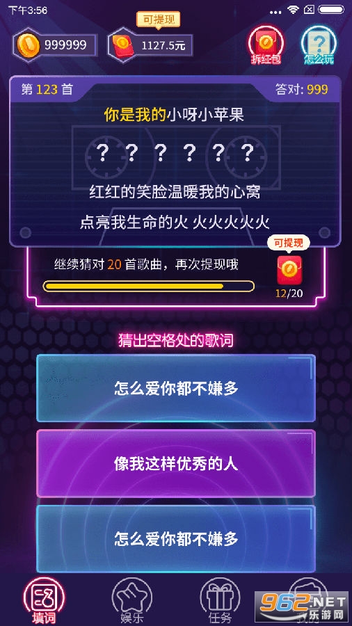 操作很简单,你只需听一段歌曲片段,把缺失的歌词部分填进去,答对就能顺利通关了。
