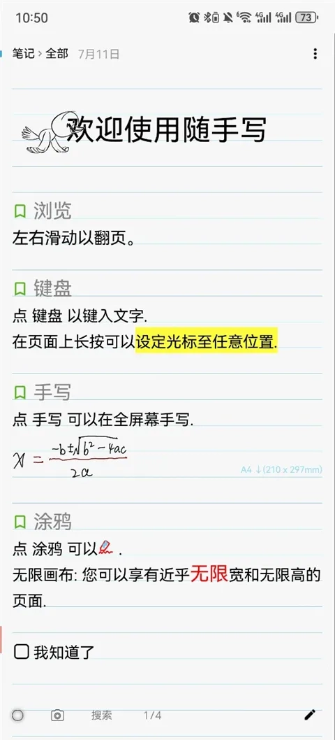 2. 独特手写键盘混输模式,满足多样记录需求。